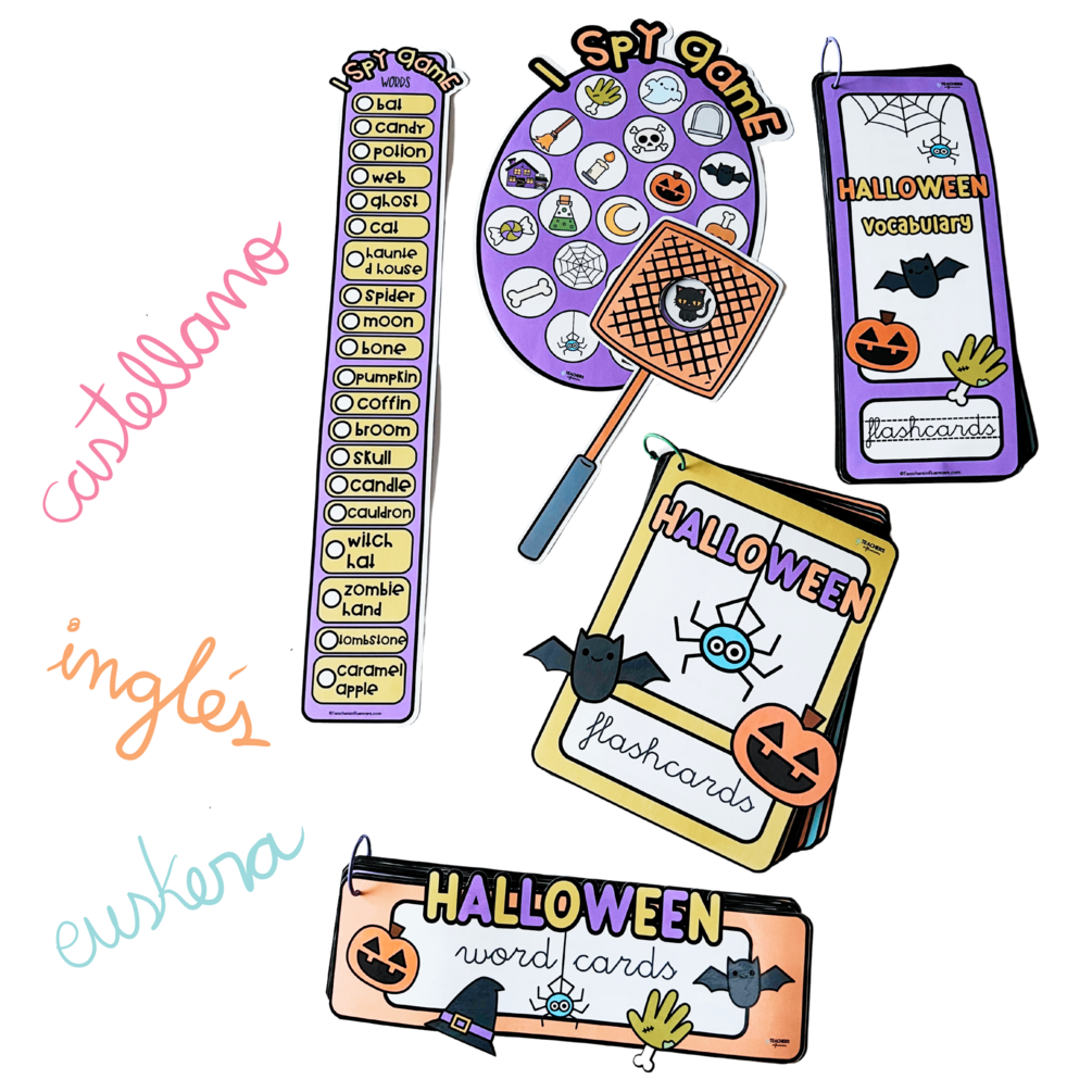 - Halloween vocabulary (dos versiones, con una tarjeta o doble)